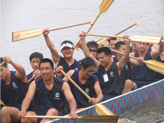 在穿著統(tǒng)一的公司藍(lán)色T恤,陣容龐大的艾志工業(yè)技術(shù)集團(tuán)有限公司拉拉隊(duì)的吶喊聲中,“志在千里”龍舟隊(duì)以小組第一的成績(jī)殺入了半決賽。并最終以第四名的成績(jī)?cè)跊Q賽中取得了優(yōu)異的成績(jī)。所有的感動(dòng)、激情、欣慰都只能用陣陣歡呼聲來表達(dá)!