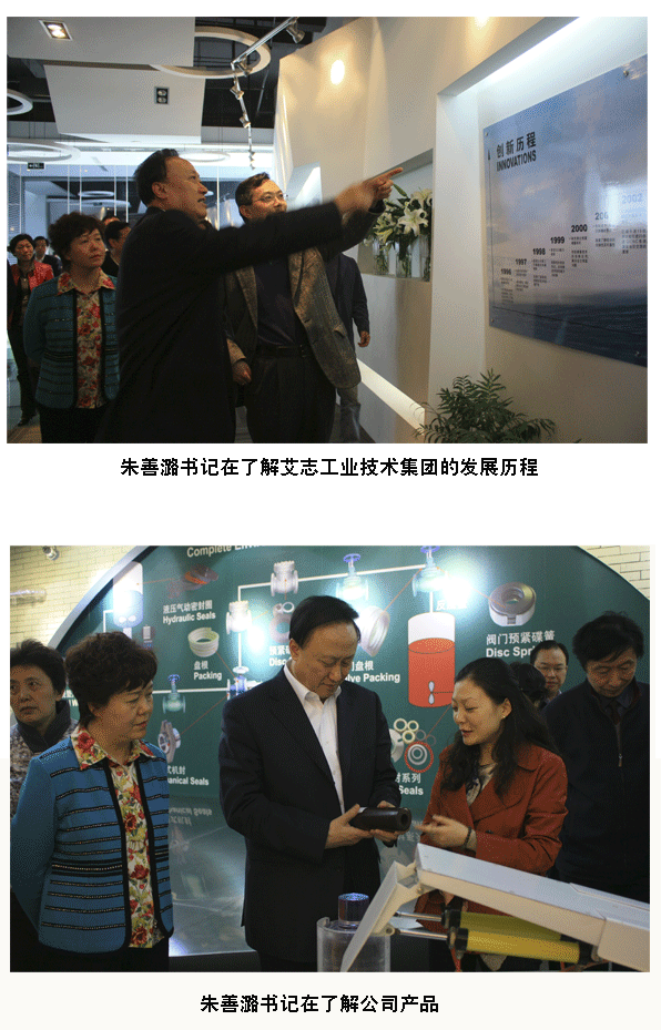 2010年4月,省委常委、市委書記朱善璐及市領導劉以安、王詠紅等來到艾志工業(yè)技術集團有限公司位于漢中門大街的科研及行政總部考察,詳細了解了公司的發(fā)展近況以及工業(yè)密封作為一種環(huán)保技術的發(fā)展前景,朱善璐書記高督肯定艾志工業(yè)技術集團有限公司作為一家由海歸人員創(chuàng)辦的產(chǎn)學研結合的創(chuàng)新型高科技企業(yè)在節(jié)能減排環(huán)保事業(yè)上去的的成績與做出的貢獻,他強調(diào)政府將加快轉(zhuǎn)變發(fā)展方式,充分支持艾志工業(yè)技術集團有限公司這種創(chuàng)新性高科技企業(yè)的發(fā)展,深入調(diào)研,找出制約創(chuàng)新成果產(chǎn)業(yè)化的矛盾和問題,拿出南京市解決問題的整體已經(jīng)和真招實招,進一步做好政府服務,切實為企業(yè)解決在發(fā)展過程中遇到的困難,同事在更高起點、更高水平上集中力量加快推進創(chuàng)新驅(qū)動。