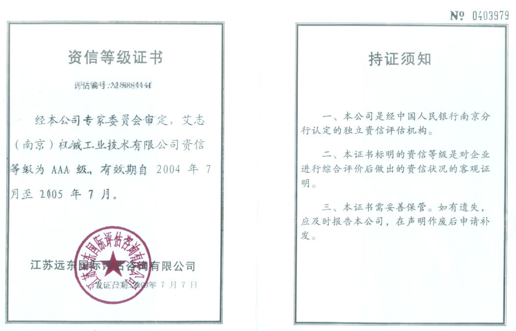 資信等級(jí)證書(shū)