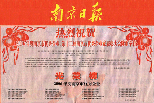 4月30日,南京市人民政府在市委禮堂召開(kāi)表彰大會(huì), 23家企業(yè)被授予“2006年度南京市優(yōu)秀企業(yè)”稱號(hào)。該獎(jiǎng)項(xiàng)每?jī)赡暝u(píng)選一次,旨在表彰在南京市發(fā)展和經(jīng)濟(jì)建設(shè)中做出突出貢獻(xiàn)的企業(yè)。市委組織部、宣傳部、市經(jīng)委、市統(tǒng)計(jì)局、市總工會(huì)、市企業(yè)聯(lián)合會(huì)等6 個(gè)部門(mén),經(jīng)過(guò)對(duì)企業(yè)2006年經(jīng)濟(jì)效益進(jìn)行綜合評(píng)價(jià)和考核,其中包括銷售收入、上繳稅金、利潤(rùn)總額、產(chǎn)品銷售率、人均利潤(rùn)、全員勞動(dòng)生產(chǎn)率等19項(xiàng)經(jīng)濟(jì)指標(biāo),以及對(duì)企業(yè)依法經(jīng)營(yíng)、按章納稅......